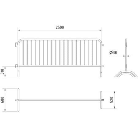 zum Absperren und Sichern von Veranstaltungsbereichen, verzinkte Stahlkonstruktion aus Ø 38 mm Rundrohr verschweißt, seitlich am Gestell sind Haken und Verbindungsbügel angeschweißt, die ein Verbinden mehrerer Elemente ermöglichen, zwei Füße aus gebogenem Rundrohr sorgen für eine standfeste Positionierung des Gitters, Gesamthöhe: 1,10 m, stabile senkrechte Stäbe sorgen für eine sichere Absperrung.Auch in beschichteter Ausführung und / oder mit Reflektionsstreifen auf Anfrage erhältlich.